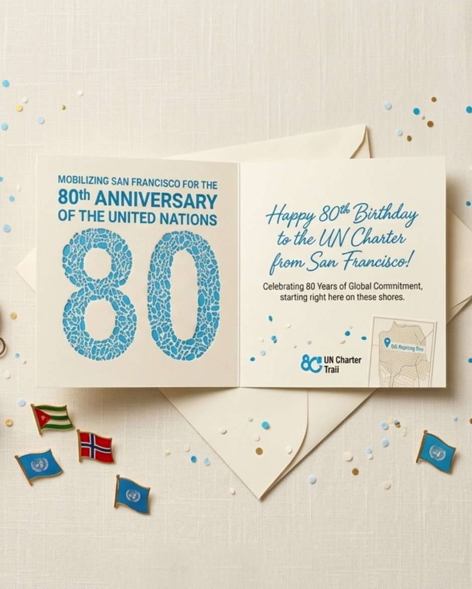 Not enough people know that San Francisco is the Birthplace of the United Nations. The UN Charter Trail, created for the 80th Anniversary of the UN, is on a mission to change this. How? Not alone. But, one step at a time. You are invited to join the party. Organized to mobilize “we the peoples” for the 80th Anniversary Commemoration.