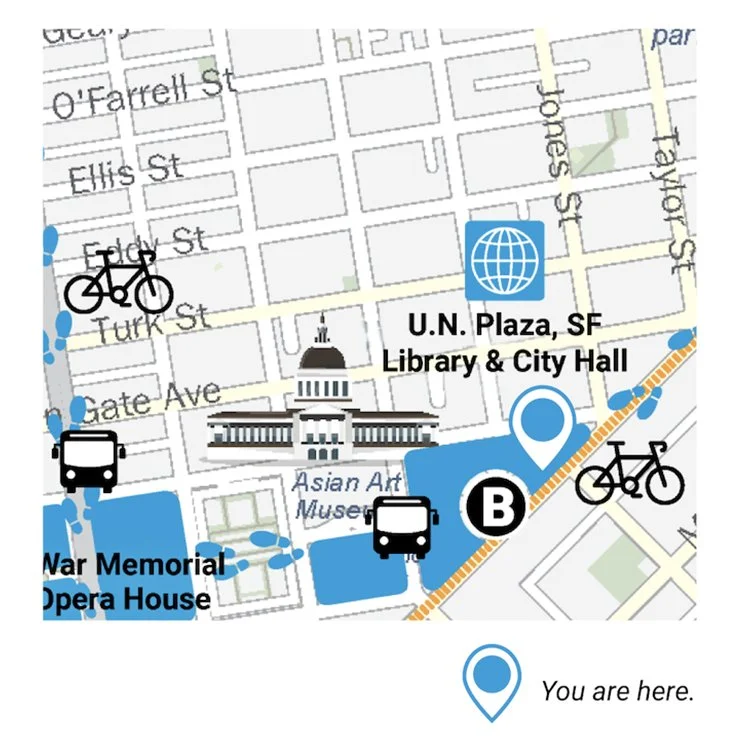 Stepping into the U.N. Plaza means stepping into a celebration of history. You’re standing in the center of San Francisco, birthplace of the United Nations. As you look around, you will realize you’re surrounded by symbols of the U.N. 50 years ago in 1975, this very plaza was unveiled and dedicated for the 30th anniversary of the U.N. Charter signing. It has been constantly evolving since. At this stop, you will see a variety of features that have been added throughout the years. From the “Walk of Great Ideas,” to the big U.N. emblem, to even a skate park, the U.N. Plaza represents community on both the local and international levels.