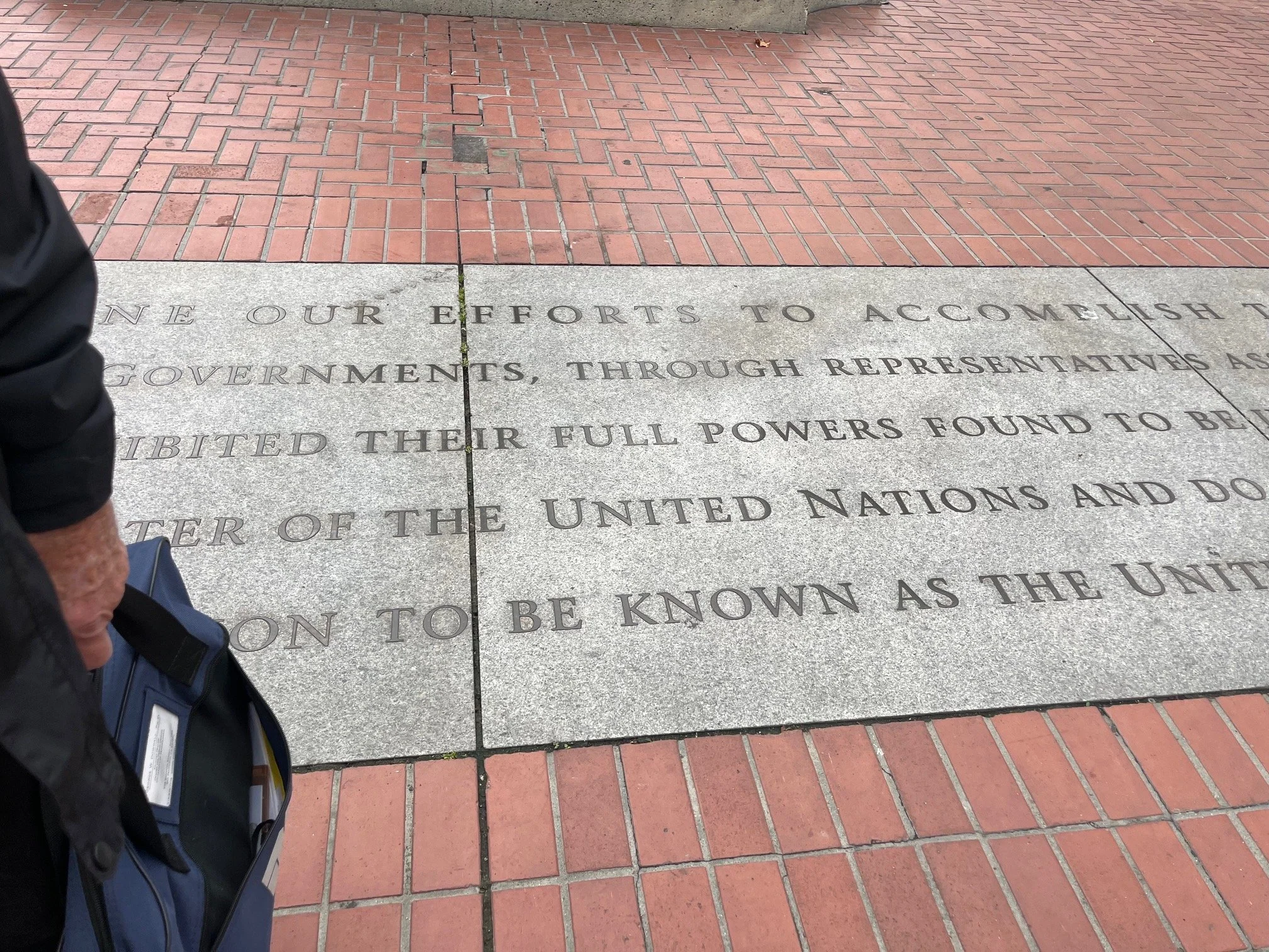 You have reached a major cultural and historical center of the city: the United Nations Plaza. Below your feet is where history gets made and celebrated.